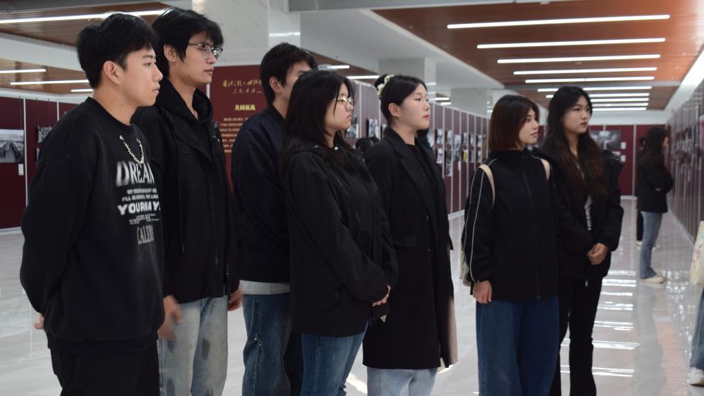 本次艺术展依托新华社珍藏的海量历史影像资源,以“人民必胜”为核心主线,通过“浴血抗争”“同心筑防”“胜利荣光”等多个篇章,用一幅幅定格历史瞬间的照片、一段段还原真实场景的详实文字,生动再现了不同历史时期,先辈们用热血与忠魂筑起民族脊梁的英雄事迹。观展过程中,师生们全程专注投入,在重点影像前均驻足凝视,感受中国人民抗日战争的壮阔历程和伟大胜利。