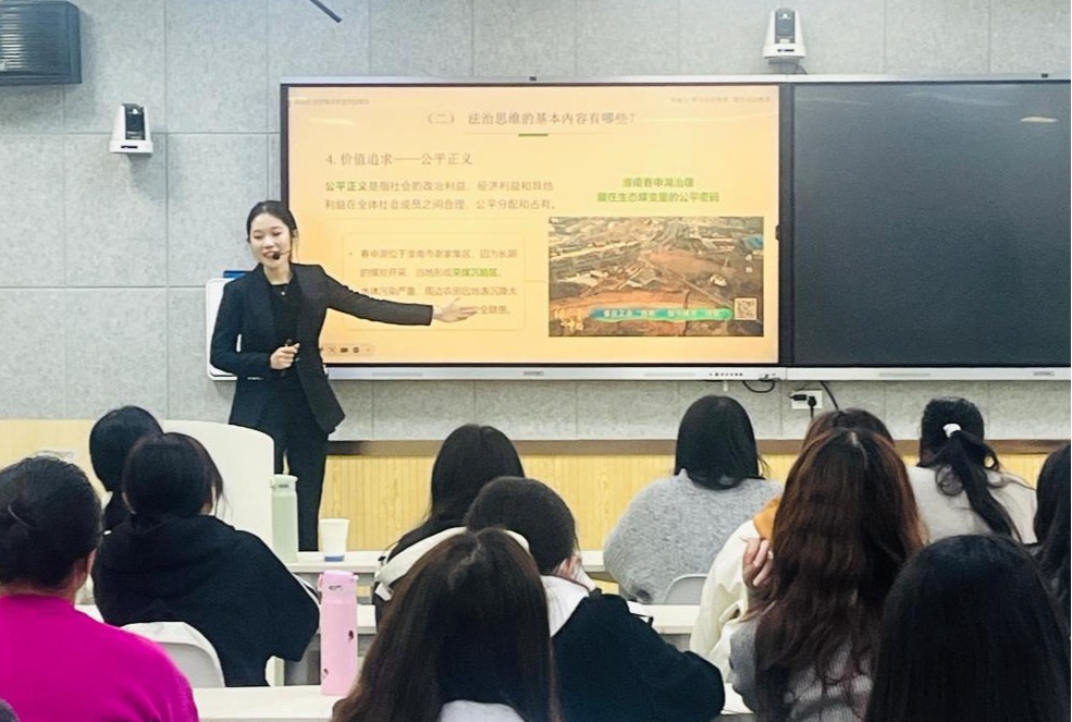 杨翠华老师从什么是道德;道德是怎么产生的;道德的本质是什么;道德有哪些功能和作用,四个方面阐释了道德的现代定义、起源以及知行合一的实践精神。杜筱彤老师从培养社会主义法治思维;依法行使法律权利、履行法律义务以及提升法治素养的途径三个方面,引导学生把握法治思维的内涵,明确法律权利与法律义务的关系与界限。